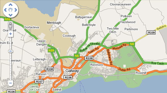 Take the N18 to Clarecastle. In the centre of the village exit the N18 at the "Coach House" by continuing straight (instead of turning right to Ennis). After half a mile take the left at the signpost for Clare Vehicle Testing Centre. Continue for another half mile.
